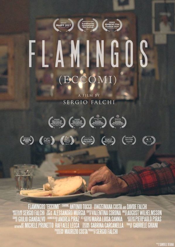 Sinossi: Un vecchio, burbero pescatore incontra una ragazzina migrante in fuga, che si nasconde nel suo capanno da pesca. Dopo un momento di paura, il vecchio soccorrerà la ragazzina e pian piano entrambi, quasi senza parole, comunicheranno semplicemente. Alla fine una nuova consapevolezza renderà capace il vecchio di illustrare un sottile parallelismo tra i fenicotteri in volo e i migranti, il tutto narrato al proprio nipote. Le migrazioni come fenomeni naturali e imprescindibili. La quotidianità e le convinzioni messe alla prova quando alle notizie si sostituisce la realtà, quando il bisogno bussa alla nostra porta. I fenicotteri come metafora dell’integrazione, simbolo e vanto della Sardegna sono anche essi in realtà migranti ora stabilitisi qui.