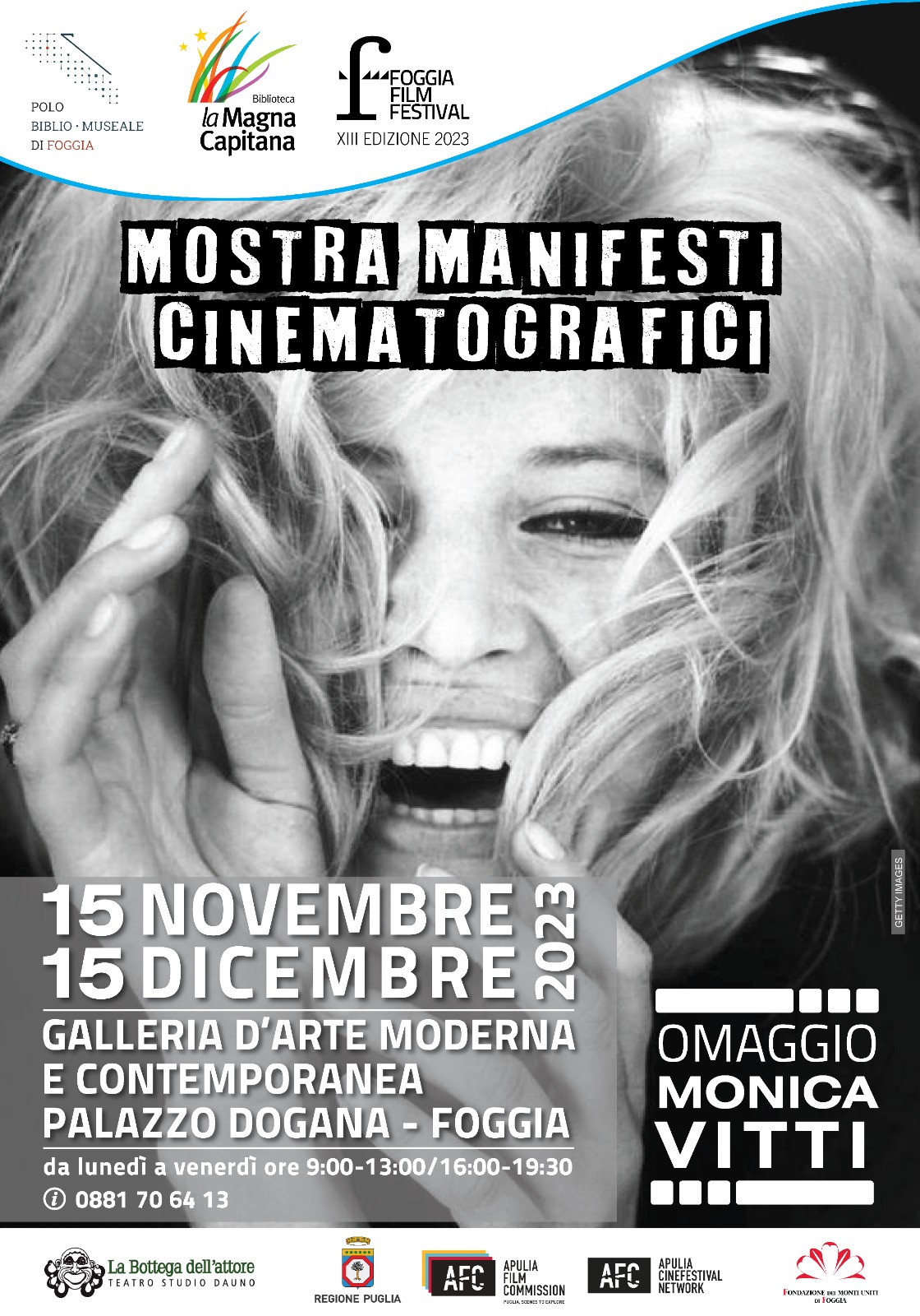 La Galleria d’Arte Moderna e Contemporanea di Palazzo Dogana, in piazza XX Settembre a Foggia, ospita infatti “Omaggio a Monica Vitti”, la mostra di manifesti cinematografici dedicata alla grande attrice, organizzata dalla biblioteca “la Magna Capitana” e che sarà inaugurata proprio il 15 novembre, anteprima del Foggia Film Festival.